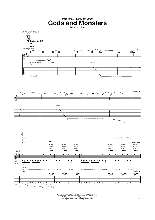 Digital Sheet Music for Gods And Monsters by John 5 scored for Guitar Tab; id:387928