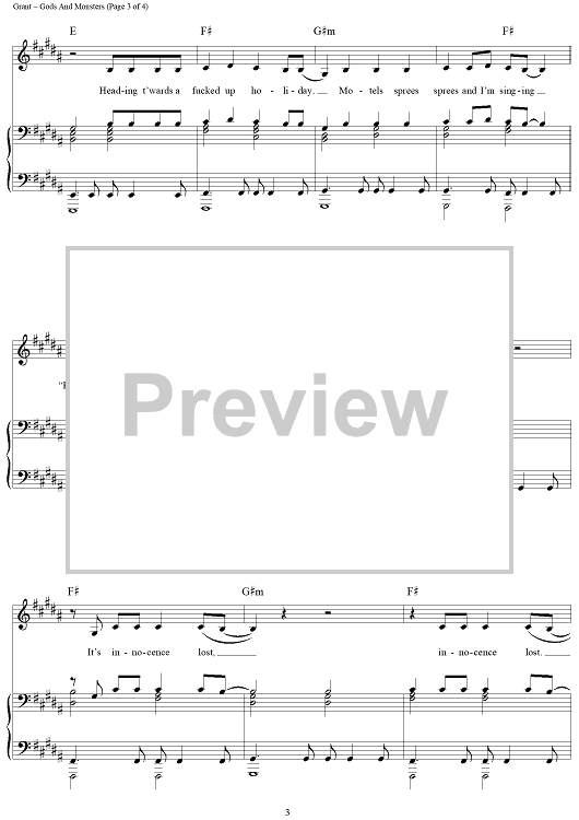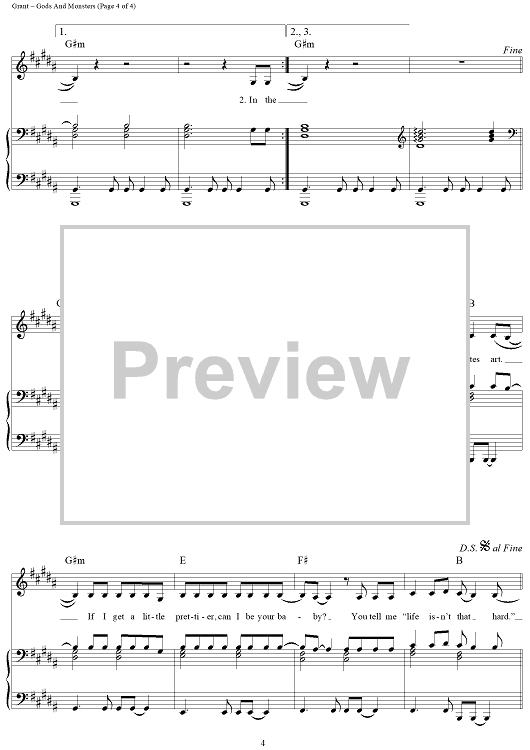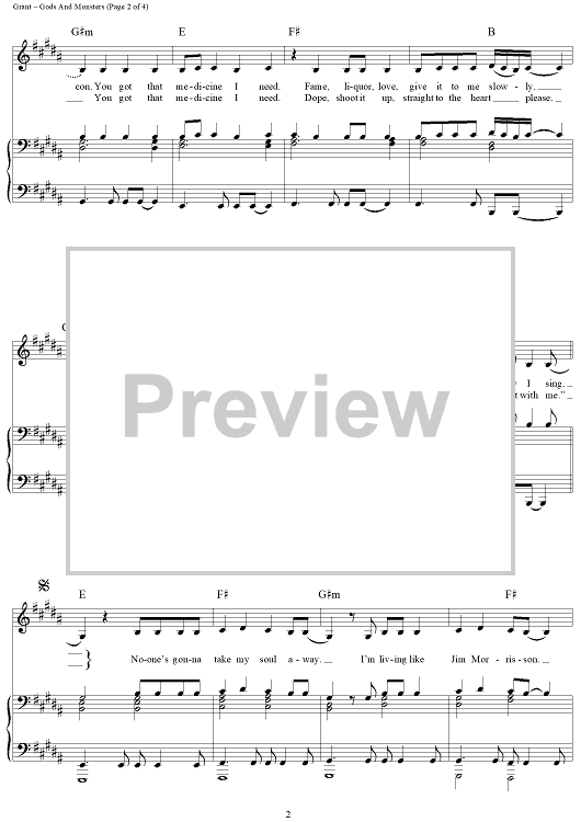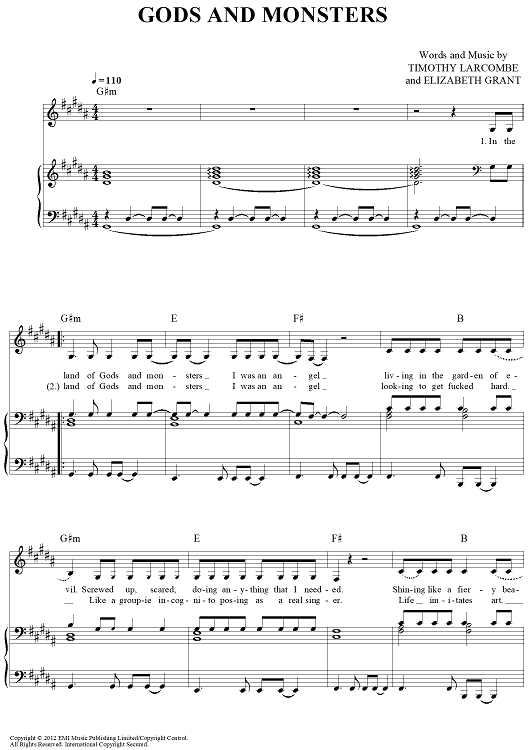 Digital Sheet Music for Gods and Monsters by Elizabeth Grant, Lana Del Rey, Timothy Larcombe scored for Piano/Vocal/Chords; id:443813