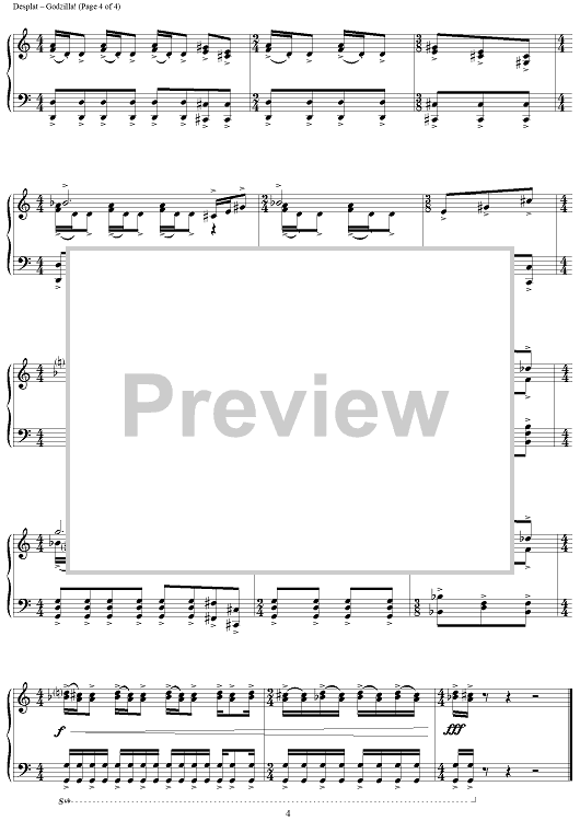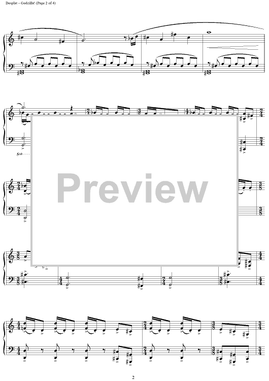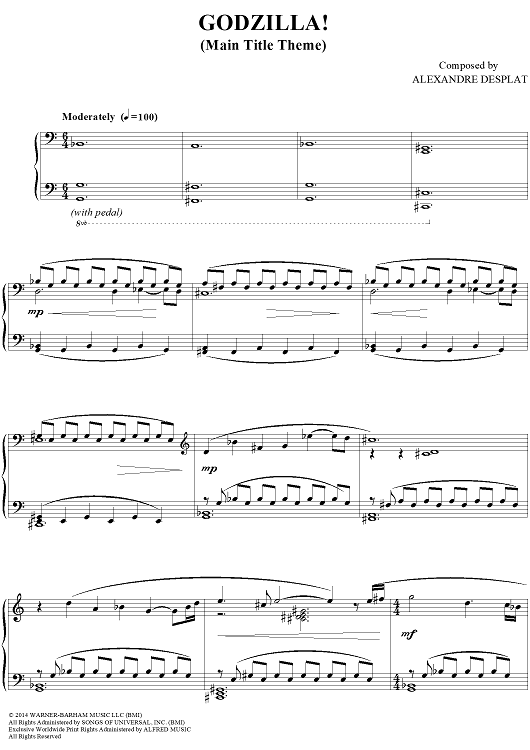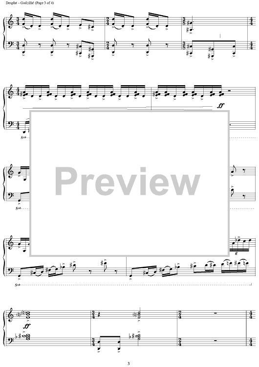 Digital Sheet Music for Godzilla! (Main Title Theme) by Alexandre Desplat scored for Piano Solo; id:441832