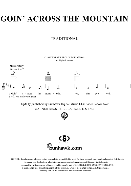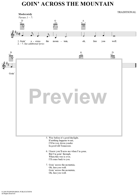 "Goin' Across the Mountain" Sheet Music by Traditional