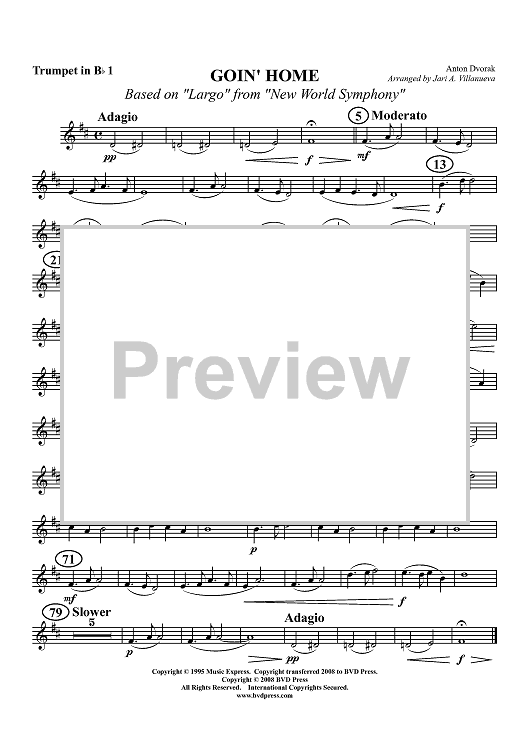 "Goin' Home (based on "Largo" from "New World Symphony" - Trumpet 1" Sheet Music by Antonín Dvorák
