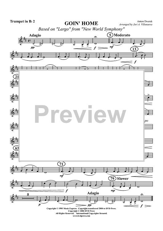 "Goin' Home (based on "Largo" from "New World Symphony" - Trumpet 2" Sheet Music by Antonín Dvorák
