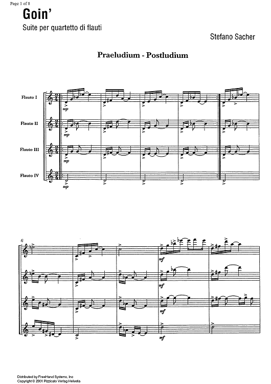 Digital Sheet Music for Goin' by , Stefano Sacher scored for 4 Flutes; id:336154