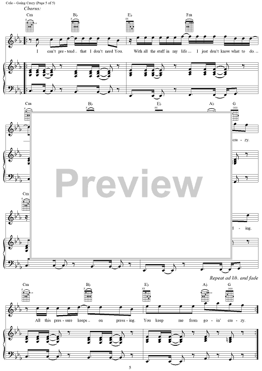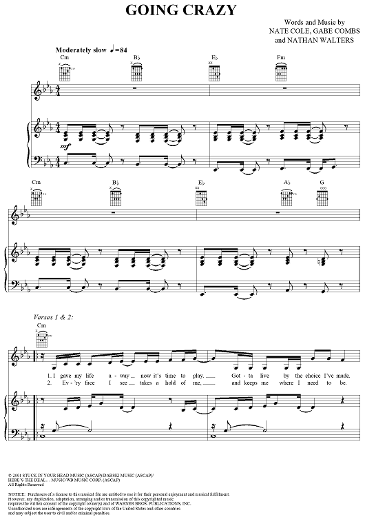 Digital Sheet Music for Going Crazy by Plus One, Nathan Walters, Nate Cole, Gabe Combs scored for Piano/Vocal/Chords; id:292063