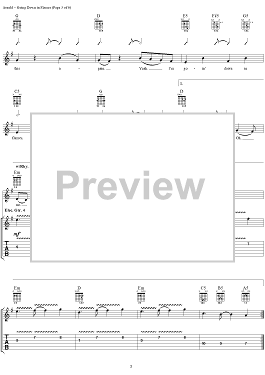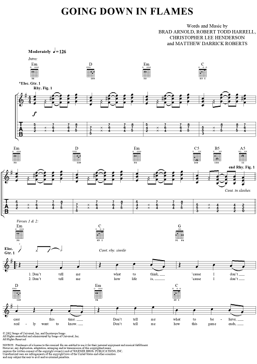 "Going Down in Flames" Sheet Music by 3 Doors Down