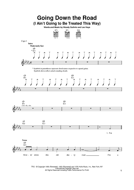"Going Down The Road (I Ain't Going To Be Treated This Way)" Sheet Music by Woody Guthrie