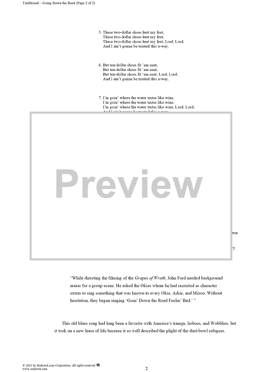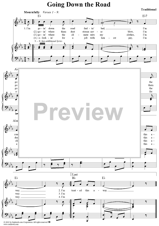 Digital Sheet Music for Going Down the Road by Traditional scored for Piano/Vocal/Chords; id:259546