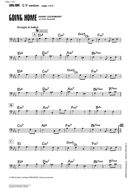 Digital Sheet Music for Going Home - C Instruments by Pete Churchill, Mark Lockheart scored for Lead Sheet; id:355663