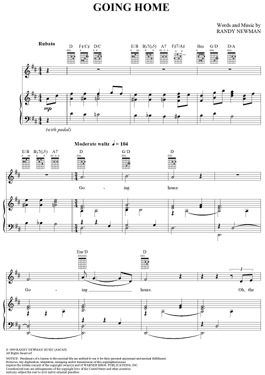 Digital Sheet Music for Going Home by Randy Newman scored for Piano/Vocal/Chords; id:253475