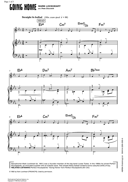 Digital Sheet Music for Going Home by , Pete Churchill, Mark Lockheart scored for Trumpet 4/Piano; id:355506