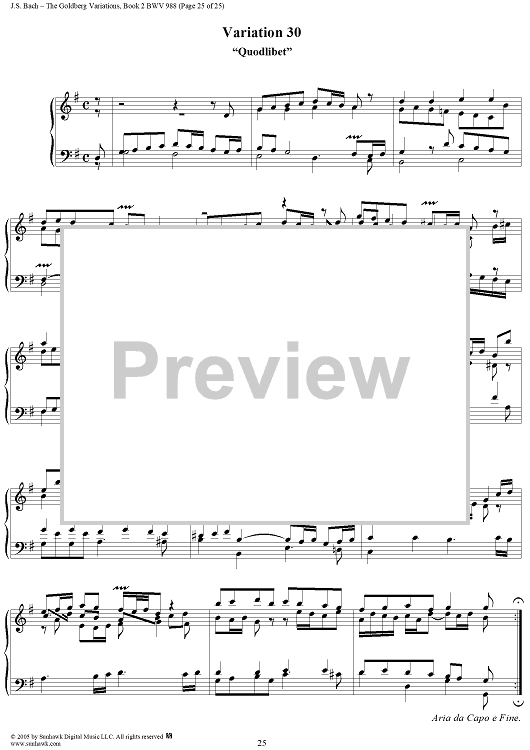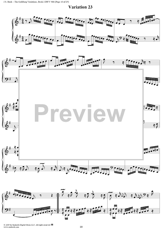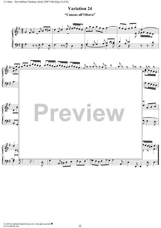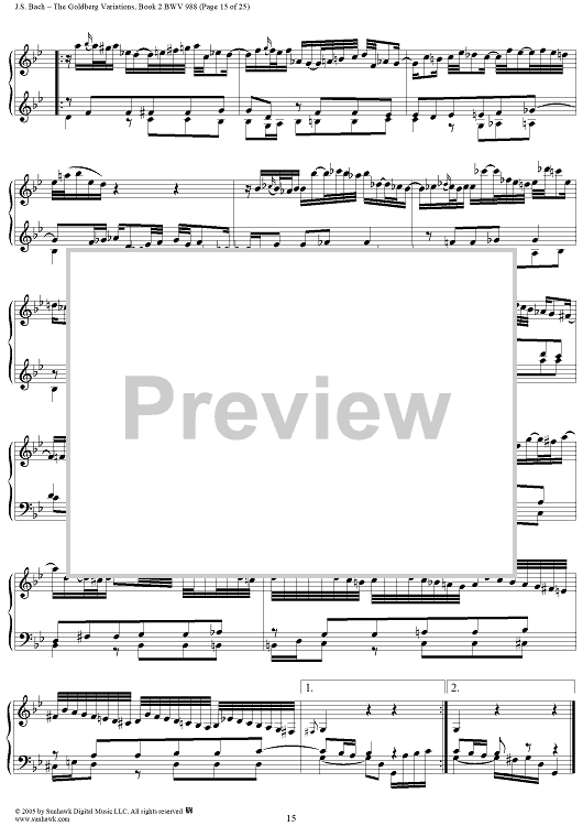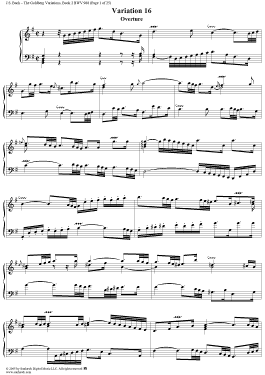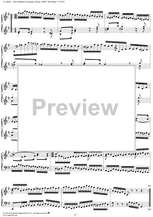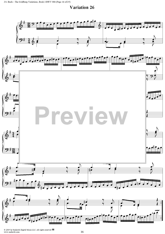 Digital Sheet Music for Goldberg Variations: Variations 16-30 by Johann Sebastian Bach scored for Piano Solo; id:312713