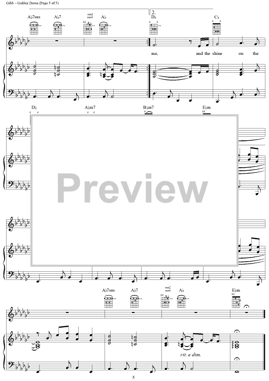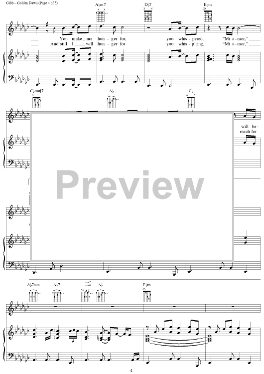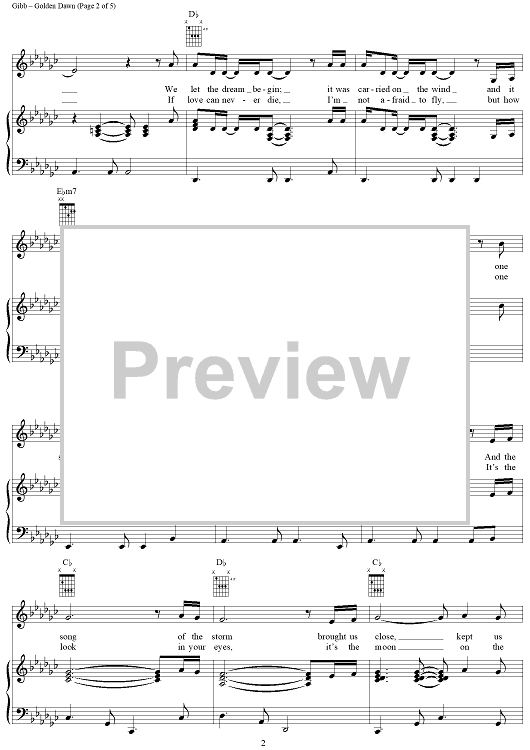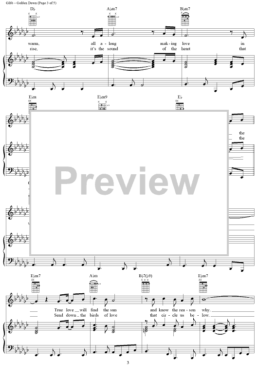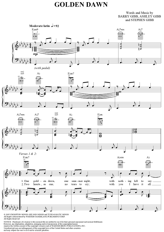 Digital Sheet Music for Golden Dawn by Barry Gibb, Ashley Gibb, Barbra Streisand, Steve Gibb scored for Piano/Vocal/Chords; id:318192