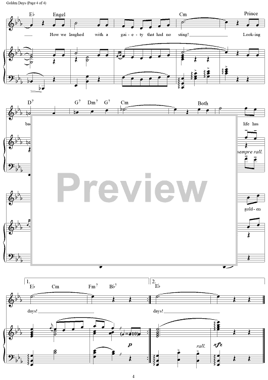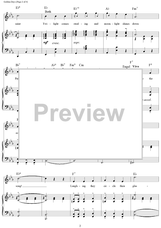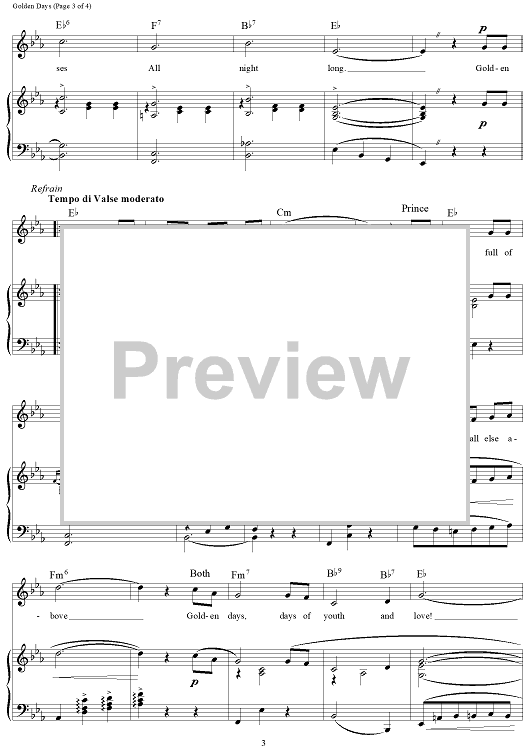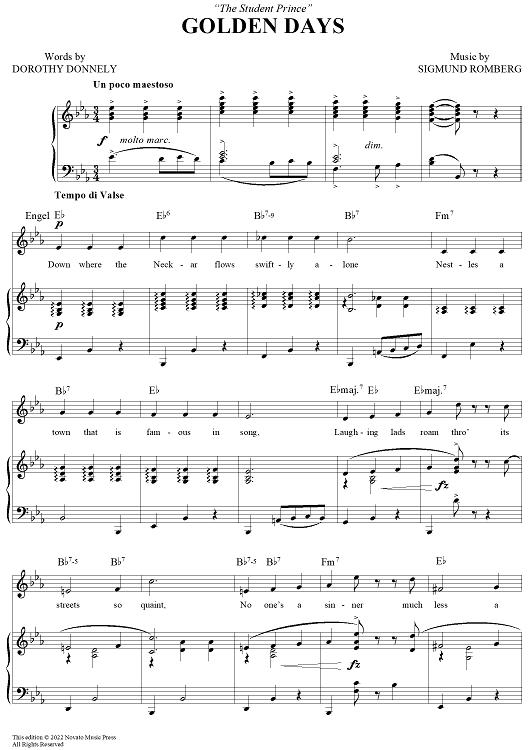 Digital Sheet Music for Golden Days by Sigmund Romberg, Dorothy Donnelly, Mario Lanza scored for Piano/Vocal/Chords; id:112033
