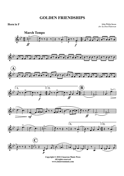 "Golden Friendships - Horn in F" Sheet Music by Henry Fillmore
