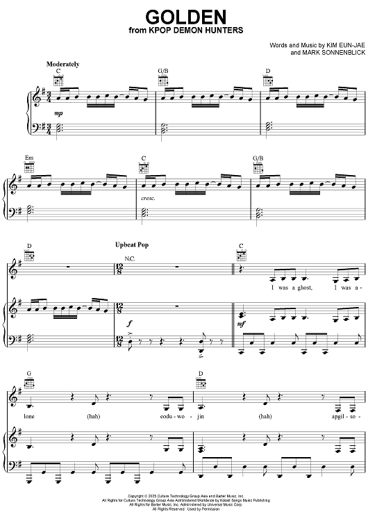 "Golden - from KPop Demon Hunters" Sheet Music by Mark Sonnenblick
