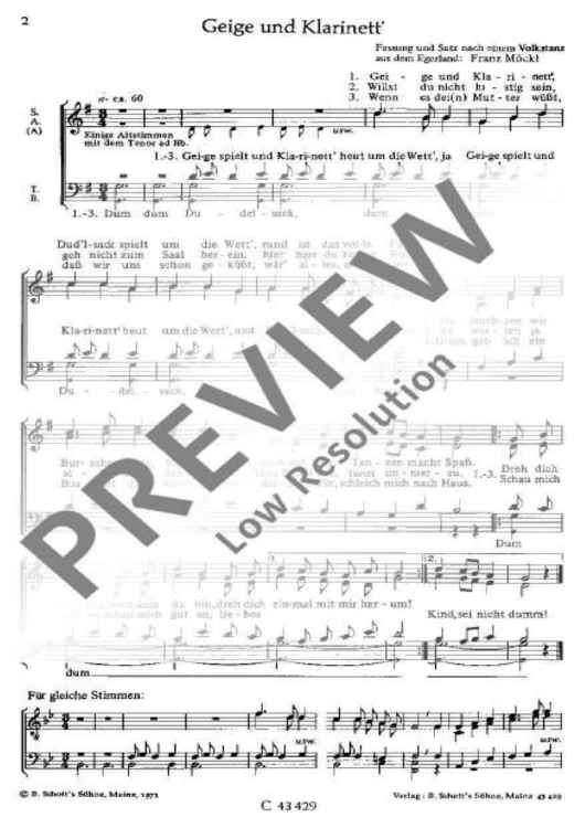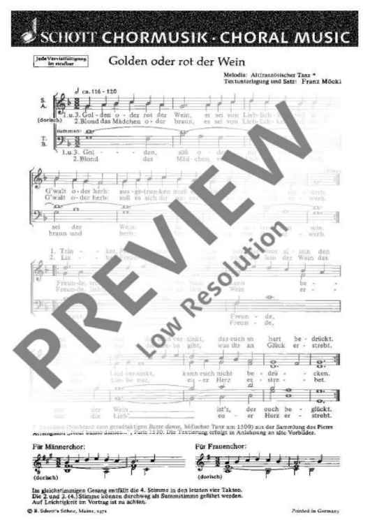 Digital Sheet Music for Golden oder rot der Wein / Geige und Klarinett' - Choral Score by Franz Moeckl scored for Mixed Choir (satb); id:479332