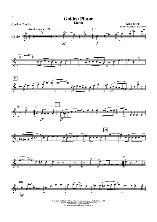 "Golden Plume - March - Clarinet 2 in B-flat" Sheet Music by Will Huff