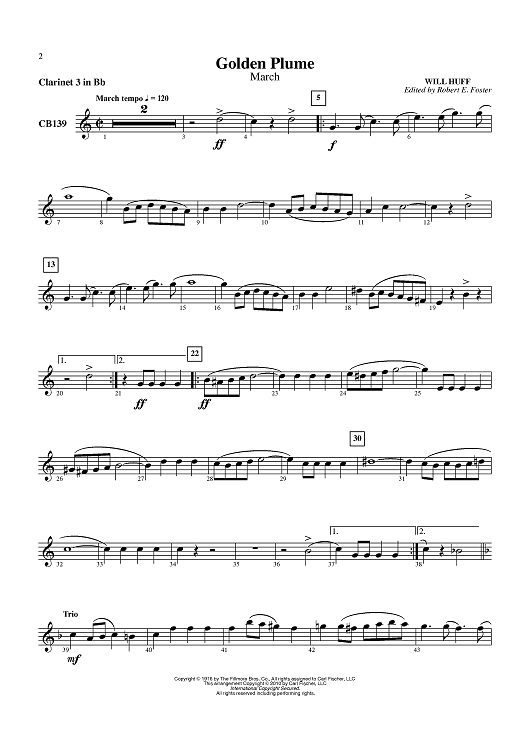 "Golden Plume - March - Clarinet 3 in B-flat" Sheet Music by Will Huff