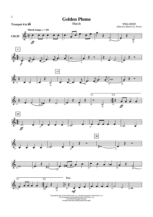 "Golden Plume - March - Trumpet 4 in Bb" Sheet Music by Will Huff