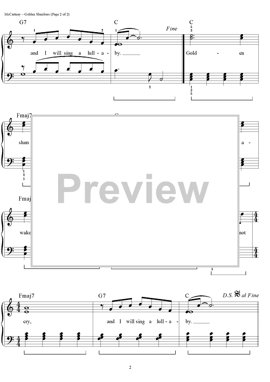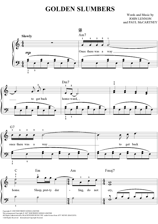 Digital Sheet Music for Golden Slumbers by Paul McCartney, The Beatles, John Lennon scored for Easy Piano/Vocal/Chords; id:449755