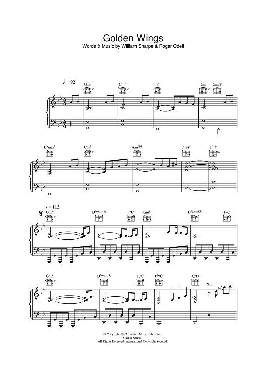 Digital Sheet Music for Golden Wings by Roger Odell, Shakatak, William Sharpe scored for Piano/Vocal/Chords; id:401957