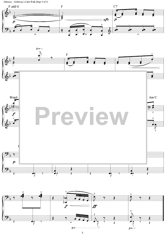 Digital Sheet Music for Golliwog's Cake Walk by Claude Debussy scored for Easy Piano/Chords; id:437312