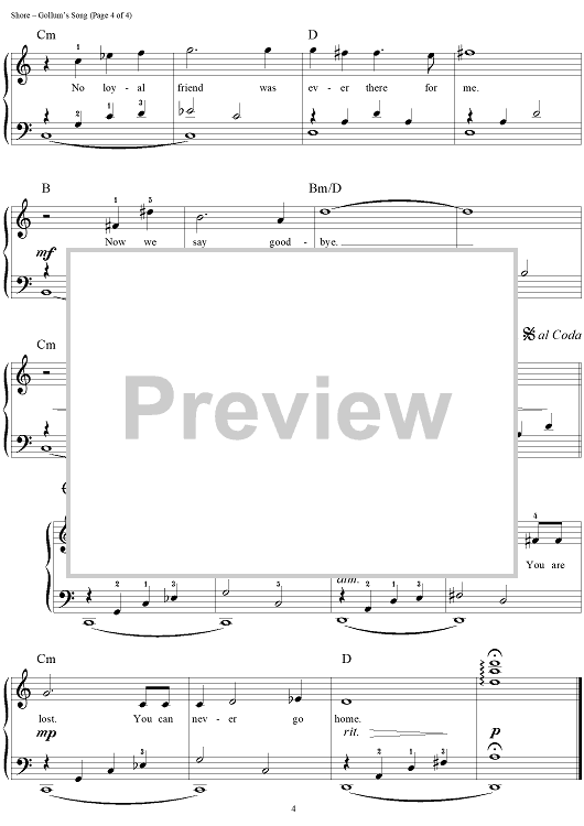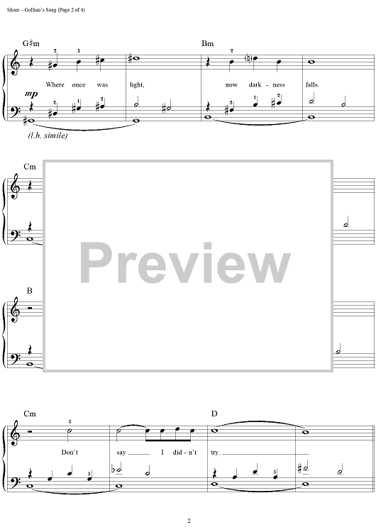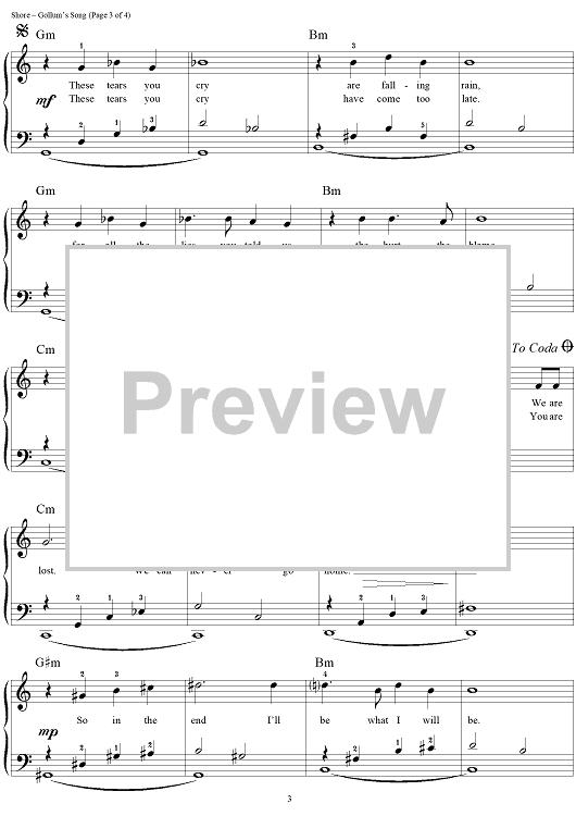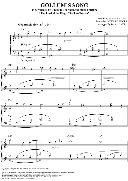 Digital Sheet Music for Gollum's Song by Dan Coates, Howard Shore, Fran Walsh, Emiliana Torrini scored for Easy Piano/Vocal; id:296245
