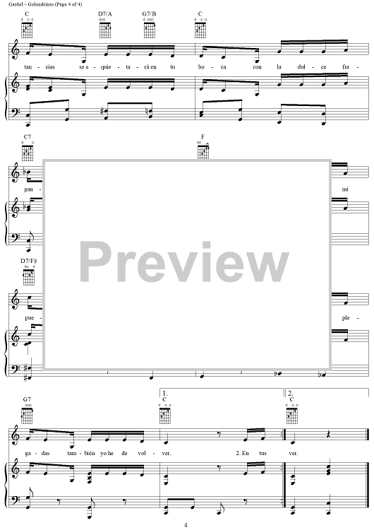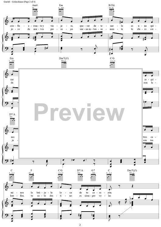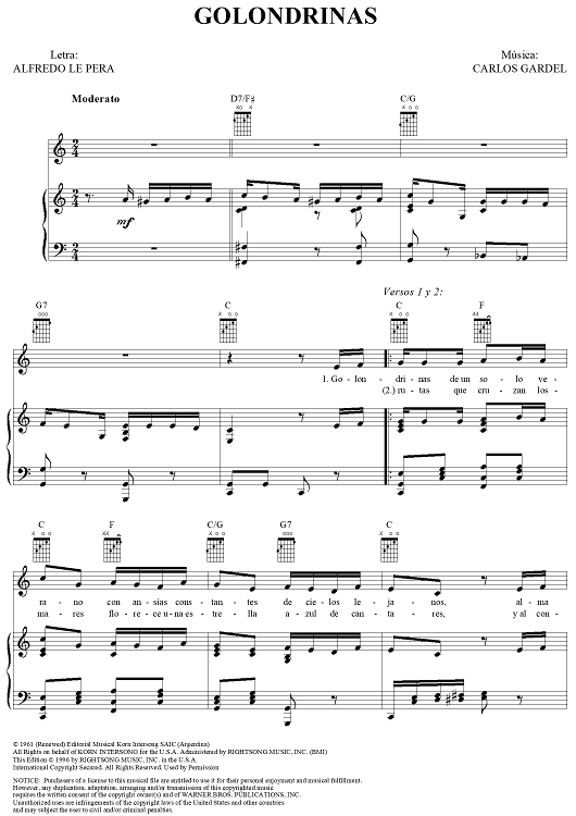 Digital Sheet Music for Golondrinas by Carlos Gardel, Alfredo Le Pera scored for Piano/Vocal/Chords; id:311958
