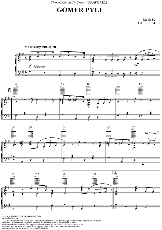 "Gomer Pyle (Main Theme)" Sheet Music by Earle Hagen