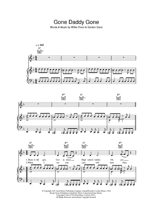 Digital Sheet Music for Gone Daddy Gone by Willie Dixon, Gnarls Barkley, Gordon Gano scored for Piano/Vocal/Chords; id:393619