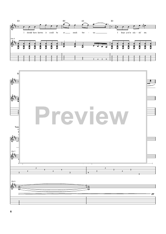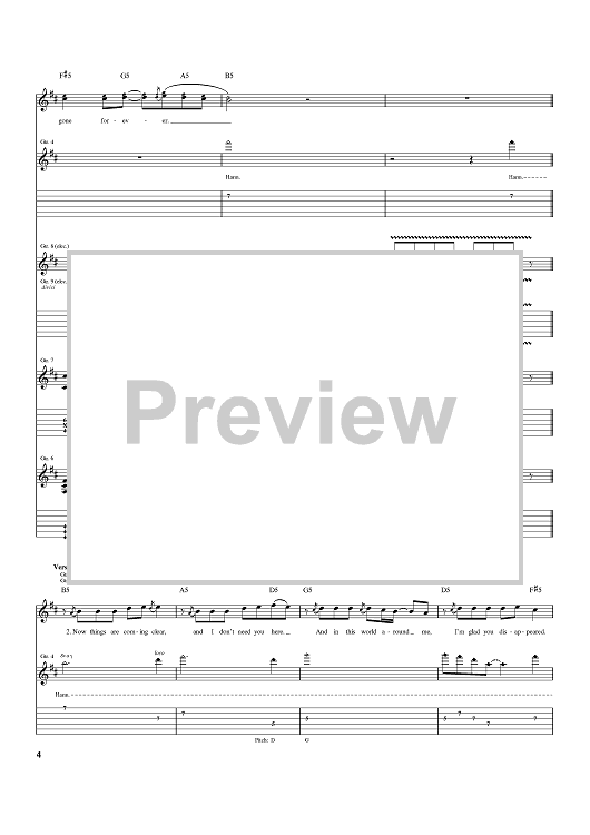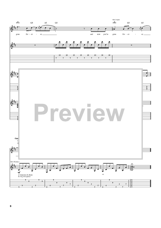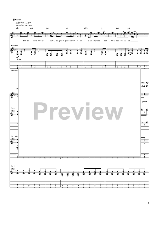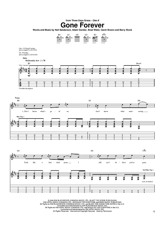 Digital Sheet Music for Gone Forever by Neil Christopher Sanderson, Adam Gontier, Brad Walst, Golden Brown, Three Days Grace, Barry Stock scored for Guitar Tab; id:394524