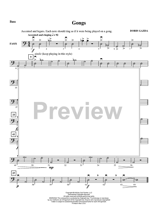 "Gongs - Bass" Sheet Music by Doris Gazda