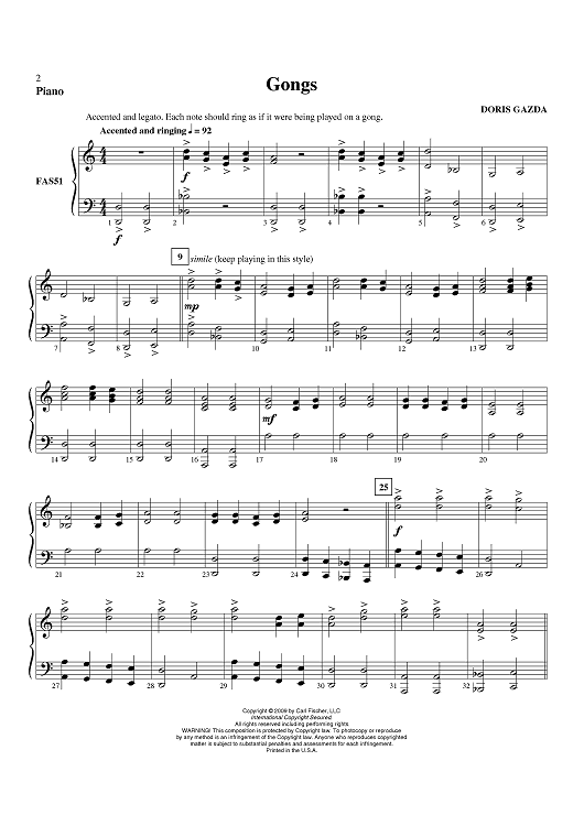 "Gongs - Piano" Sheet Music by Doris Gazda