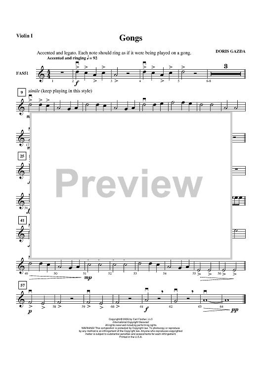 "Gongs - Violin 1" Sheet Music by Doris Gazda