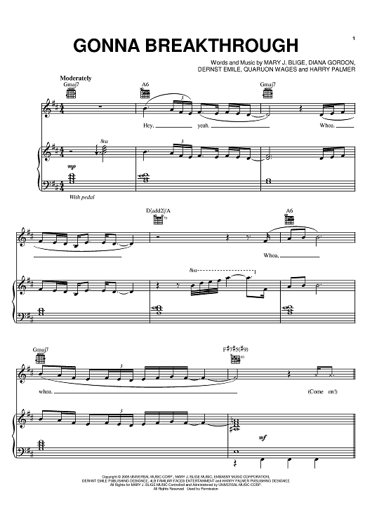 Digital Sheet Music for Gonna Breakthrough by Mary J. Blige, Dernst Emile, Diana Gordon, Harry Palmer, Quaruon Wages scored for Piano/Vocal/Chords; id:395044
