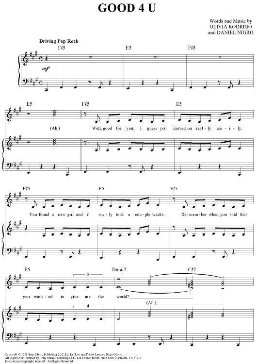 Digital Sheet Music for Good 4 U by Daniel Nigro, Olivia Rodrigo scored for Piano/Vocal/Chords; id:469333