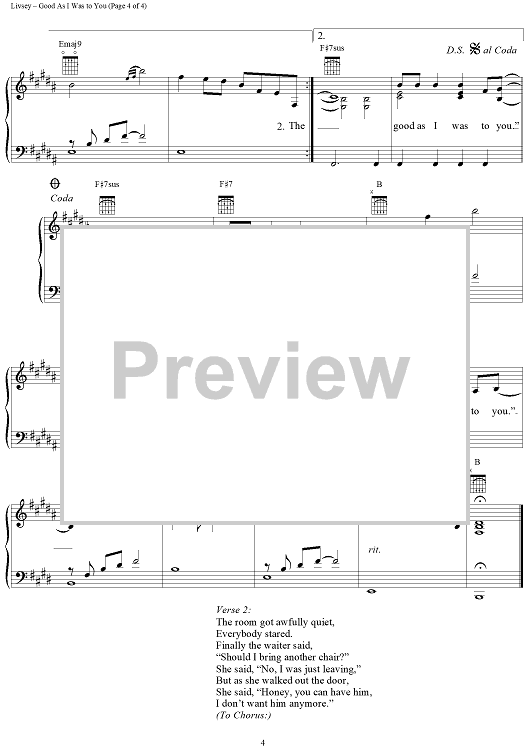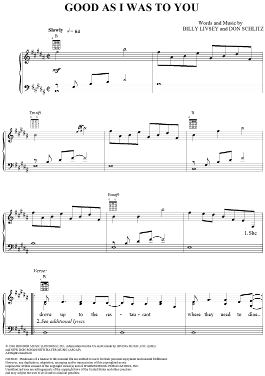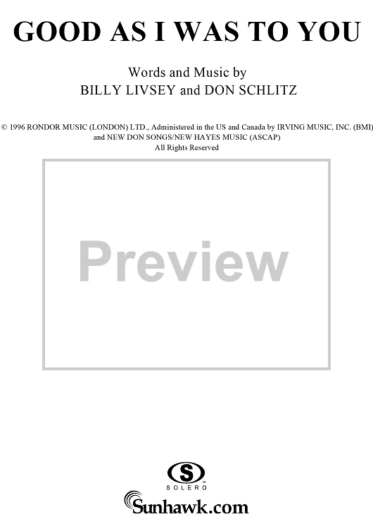 Digital Sheet Music for Good As I Was To You by Lorrie Morgan, Don Schlitz, Billy Livsey scored for Piano/Vocal/Chords; id:112494