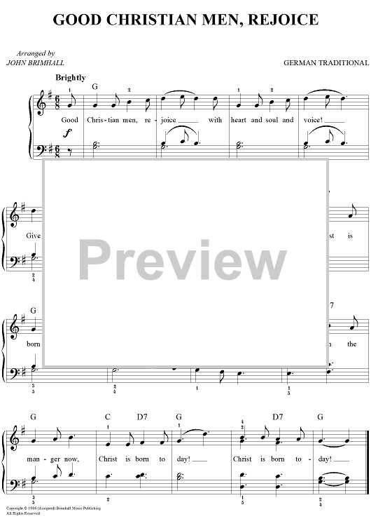 Digital Sheet Music for Good Christian Men, Rejoice by John Brimhall, Traditional German Carol scored for Easy Piano/Vocal/Chords; id:450544