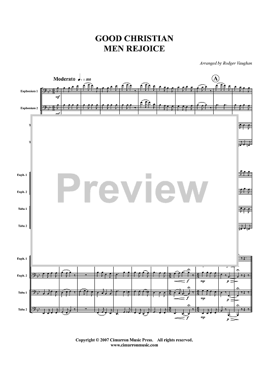 Digital Sheet Music for Good Christian Men Rejoice - Score by Rodger Vaughan, Traditional scored for Tuba Quartet; id:413558