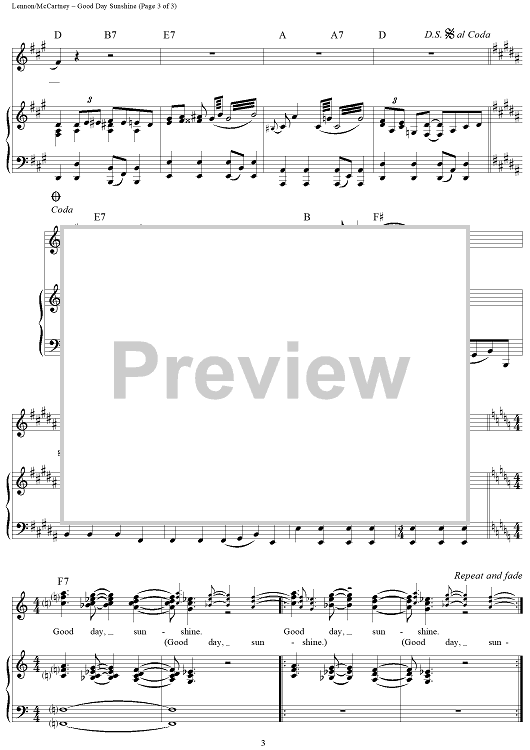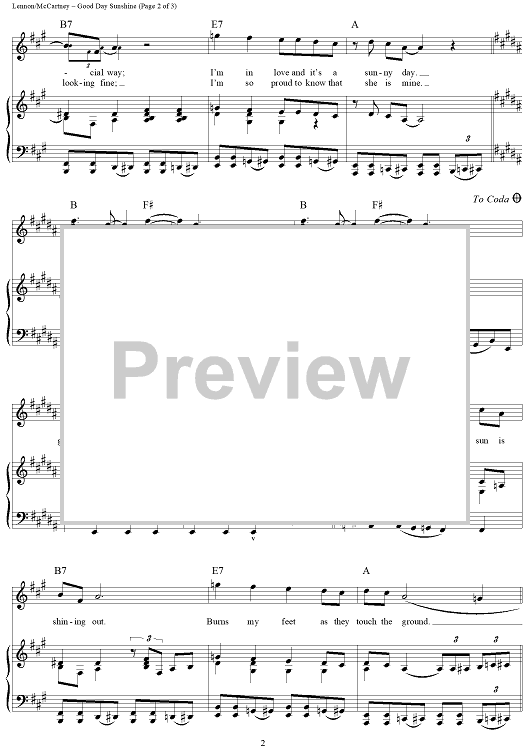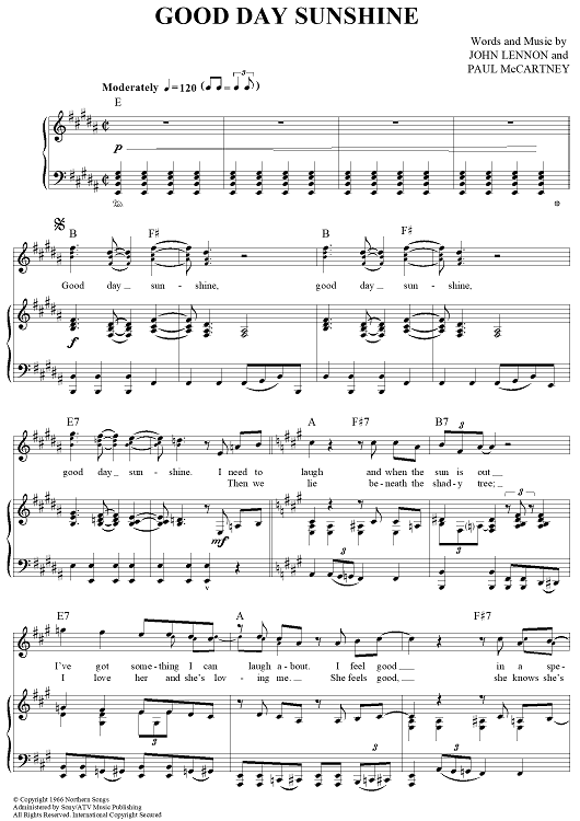 Digital Sheet Music for Good Day Sunshine by Paul McCartney, The Beatles, John Lennon scored for Piano/Vocal/Chords; id:361928