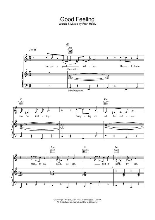 Digital Sheet Music for Good Feeling by Travis scored for Piano/Vocal/Chords; id:377041