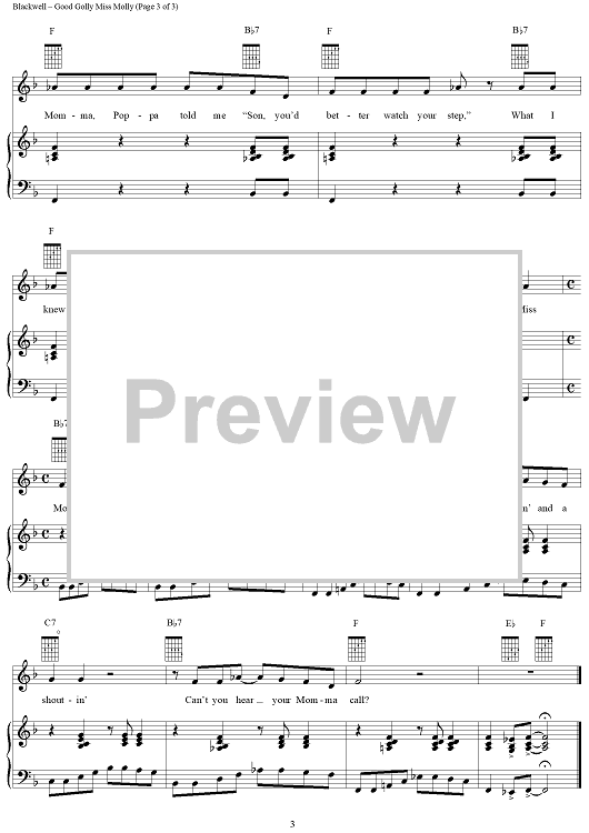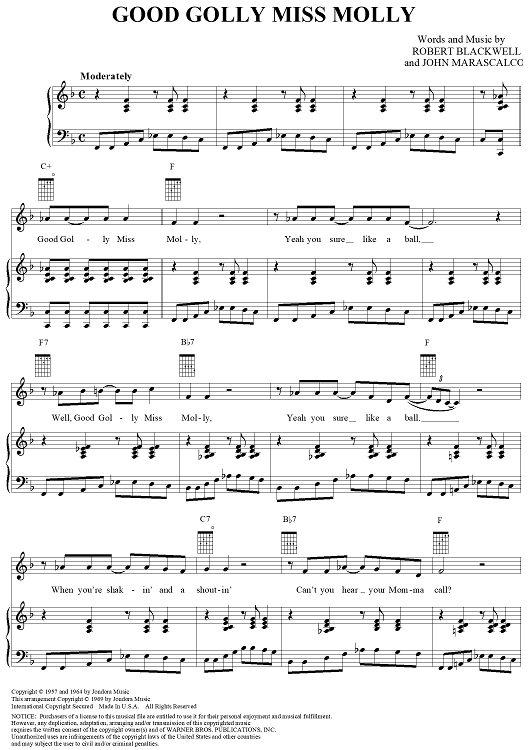 Digital Sheet Music for Good Golly Miss Molly by Robert Blackwell, John Marascalco, Creedence Clearwater Revival scored for Piano/Vocal/Chords; id:275067