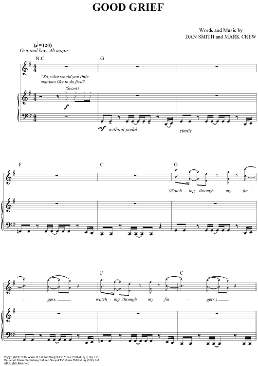 Digital Sheet Music for Good Grief by Bastille, Dan Smith, Mark Crew scored for Piano/Vocal/Chords; id:461238