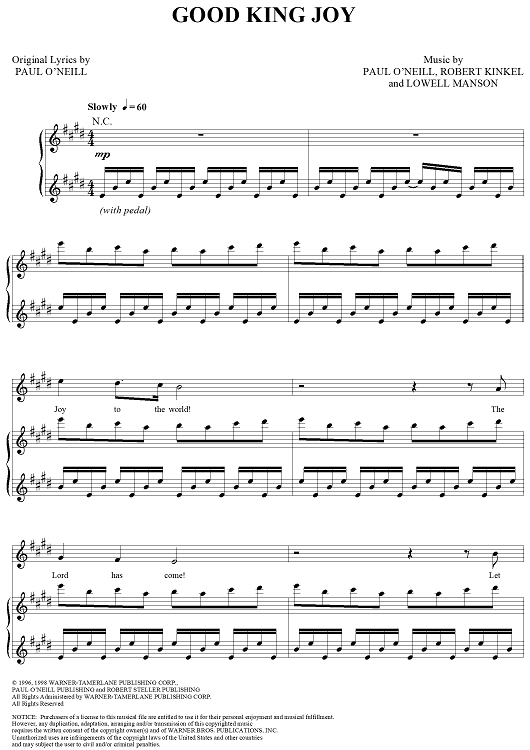 Digital Sheet Music for Good King Joy by Trans-Siberian Orchestra, Lowell Manson, Paul O'Neill, Robert Kinkel scored for Piano/Vocal/Chords; id:253901