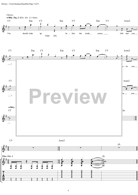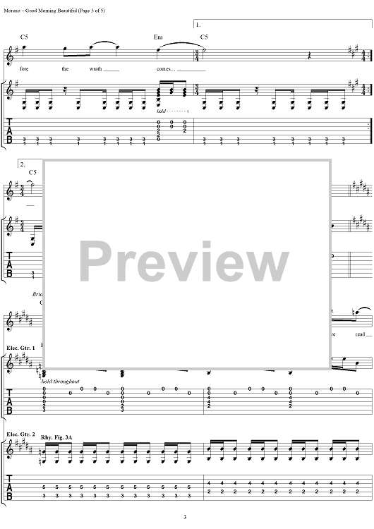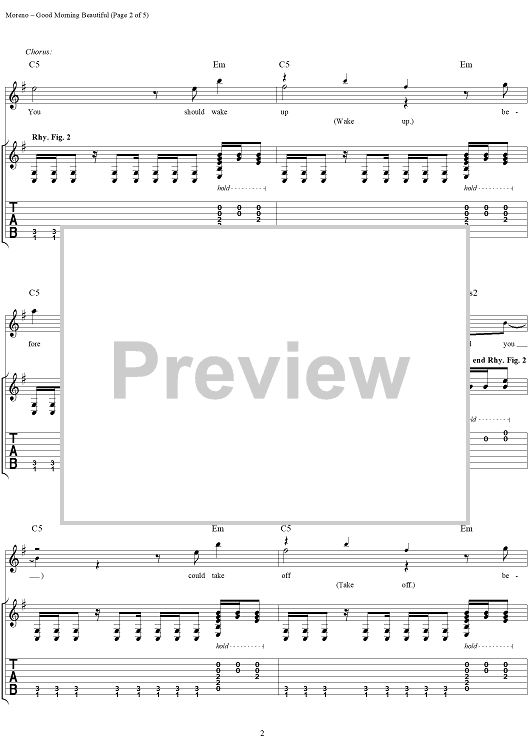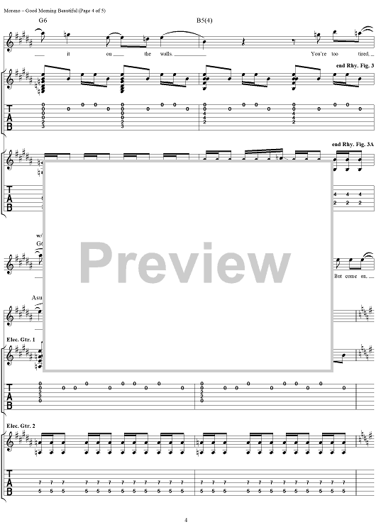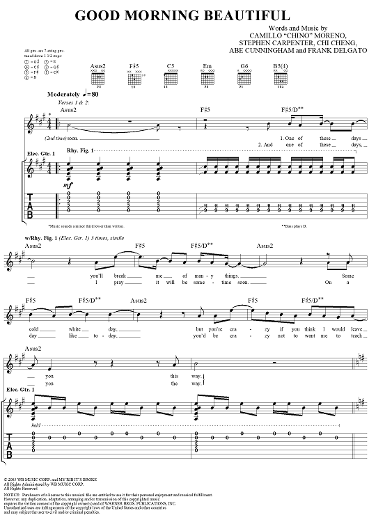 Digital Sheet Music for Good Morning Beautiful by Deftones, Chino Moreno, Chi Cheng, Abe Cunningham, Frank Delgato scored for Guitar Tab/Vocal; id:303025