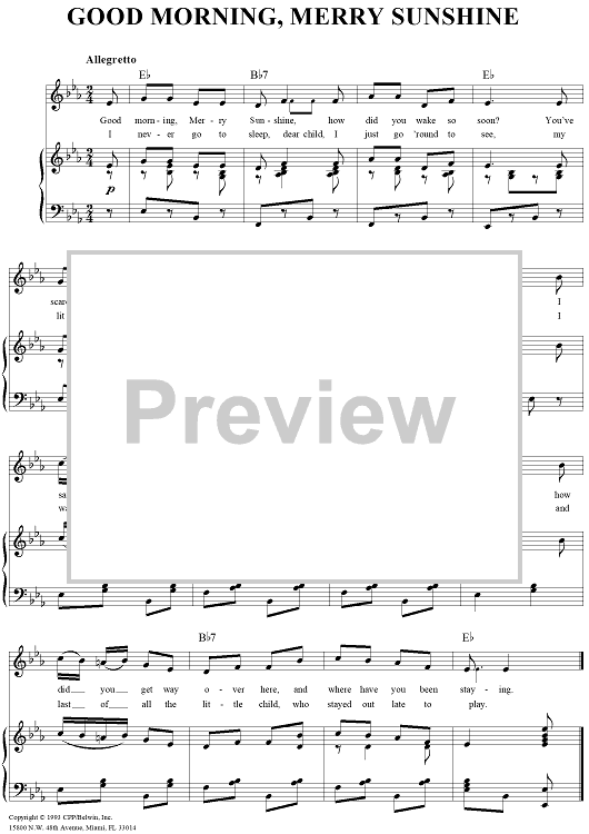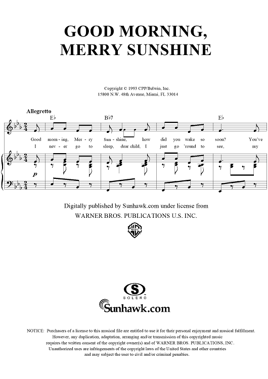 Digital Sheet Music for Good Morning, Merry Sunshine by Unknown Writer scored for Piano/Vocal/Chords; id:120685
