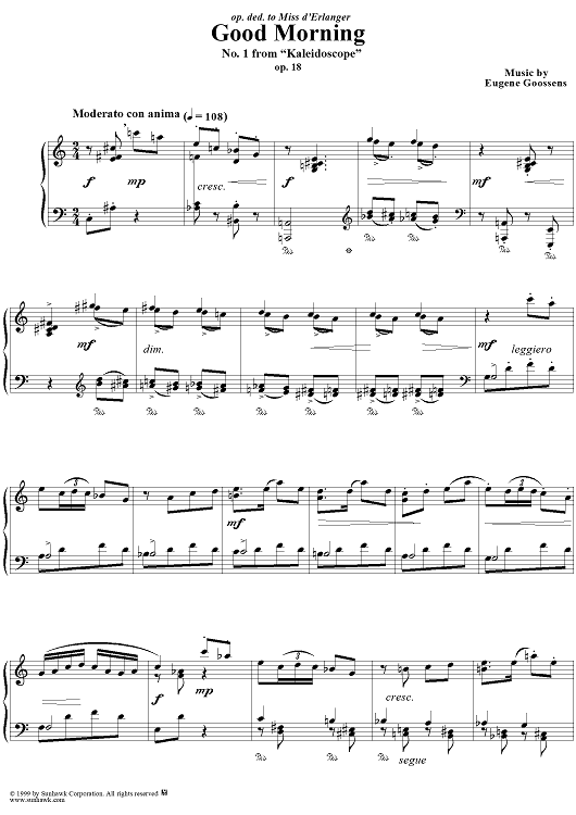 Digital Sheet Music for Good Morning - No. 1 from "Kaleidoscope" Op. 18 by Eugene Goossens scored for Piano Solo; id:267997