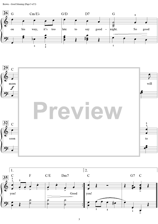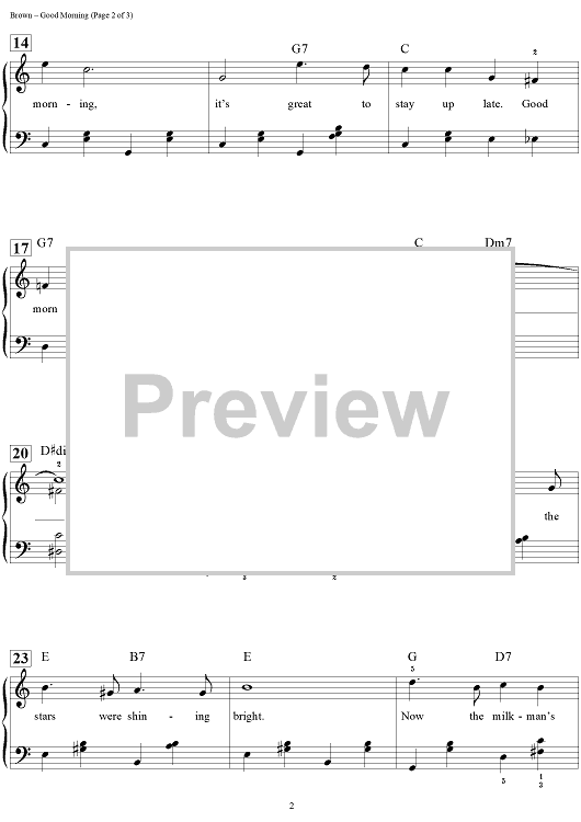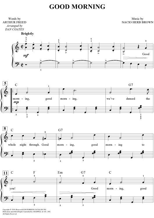 Digital Sheet Music for Good Morning by Dan Coates, Nacio Herb Brown, Arthur Freed scored for Easy Piano/Vocal/Chords; id:456668