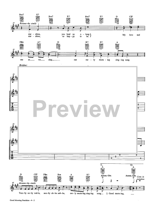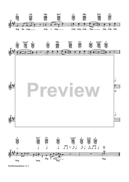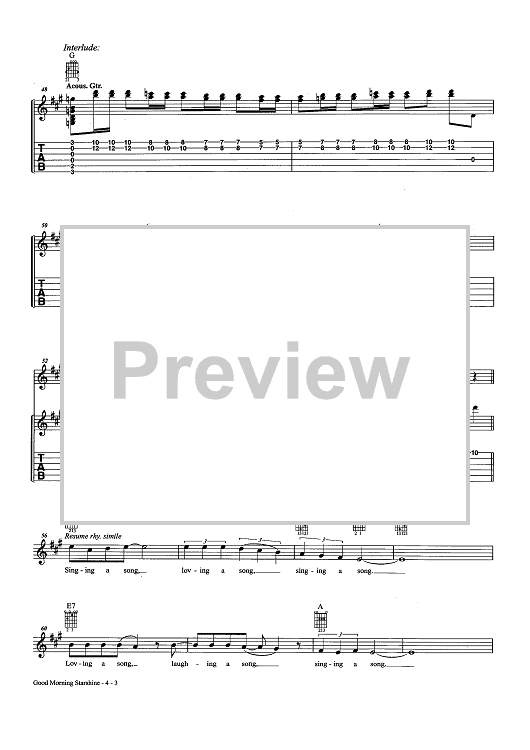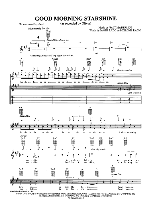 Digital Sheet Music for Good Morning Starshine (as recorded by Oliver) by Galt MacDermot, James Rado, Gerome Ragni, OLIVER scored for Easy Guitar Tab/Vocal/Chords; id:457216