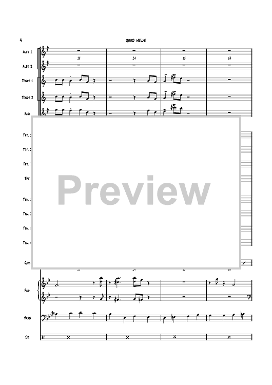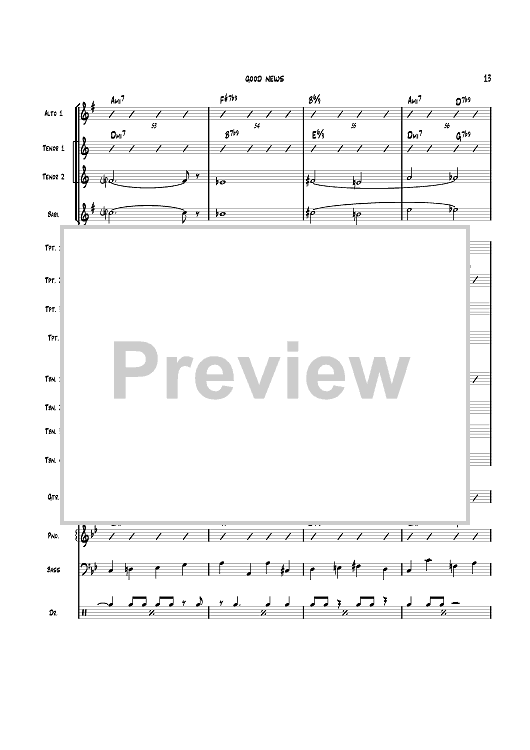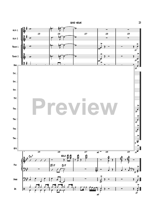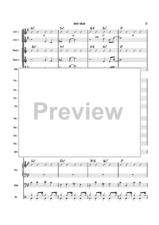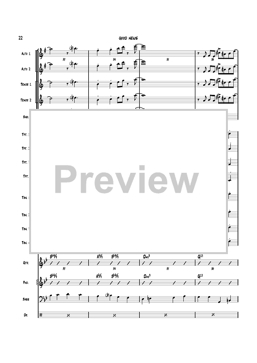 Style Medium Jazz Range: E4 F#5 Good News should be played nice and crisp! Avoid any “sluggish” approach from the band. Keep it crisp and accented. Finally at bar 72 ... everyone soft and together! Pay attention to the technique makings.
